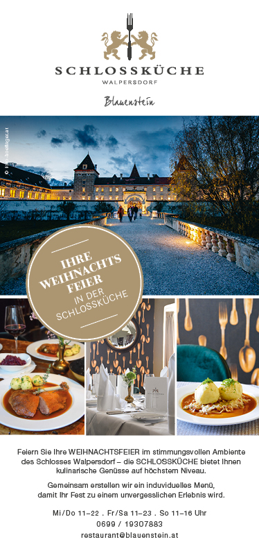 Feiern Sie Ihre Weihnachtsfeier in stimmungsvollen Ambiente des Schlosses Walpersdorf-Die Schlossküche bietet Ihnen kulinarische Genüsse auf höchstem Niveau. Gemeinsam erstellen wir ein individuelles Menü, damit Ihr Fest ein unvergessliches Erlebnis wird!